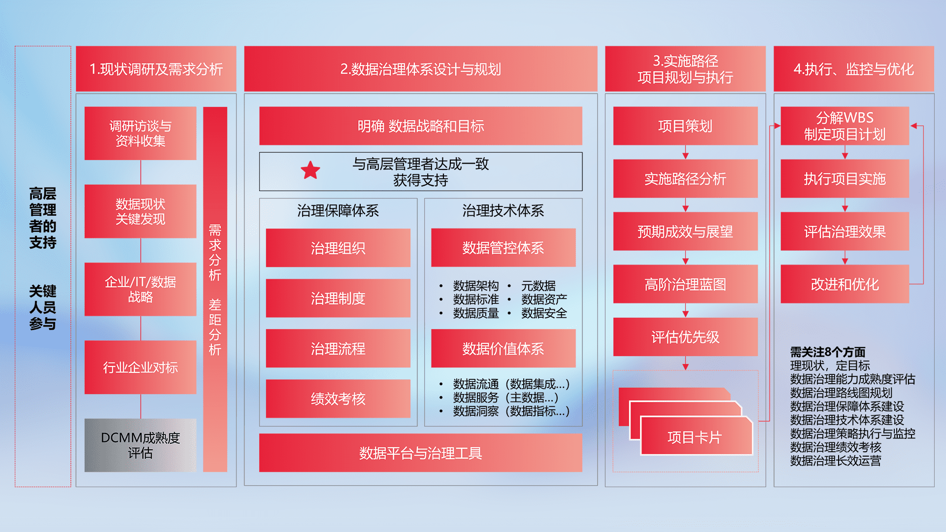 制定并执行统一的数据标准,,规范数据定义和格式,,,,消除冗余和不一致性,,实现跨部门和跨系统的数据一致性,,,为企业提供标准化的数据基础。。。