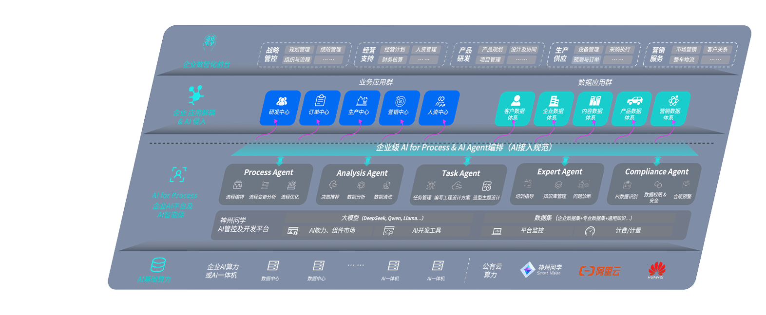 ABPAY问学智车解决方案是一套基于AI技术的汽车行业智能化系统,,覆盖从底层算力到顶层AI应用的全栈方案。。方案由算力层、、、、模型层和应用层组成:算力层,,,,方案支持多种一体机配置,,,具备云端灵活部署、、多云适配以及动态优化计算资源的能力;模型层,,,,ABPAY问学平台版提供了企业级AI应用一站式构建与管理平台,,支持基于后训练强化技术的汽车企业专属模型的训练、、、评测和运营;应用层,,ABPAY问学DeepSeek版提供包括超级员工、、智能招采、、、、智能营销、、、、智能客服、、AI for BI等一系列解决方案,,,,可助力汽车行业实现数字化转型,,,让管理更智能、、、、响应更敏捷。。